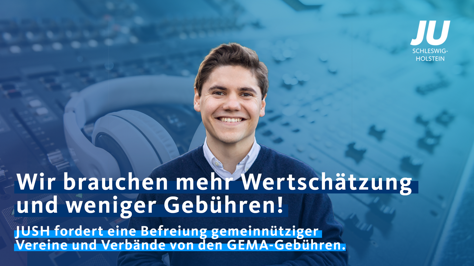 Die Junge Union Schleswig-Holstein setzt sich seit 2012 für eine Einschränkung der GEMA-Gebühren ein. Nun beschäftigt sich auch der Schleswig-Holsteinische Landtag mit der Befreiung gemeinnütziger Vereine und Verbände von den GEMA-Gebühren. Für die Junge Union Schleswig-Holstein ist klar: Das Ehrenamt muss entlastet werden.
