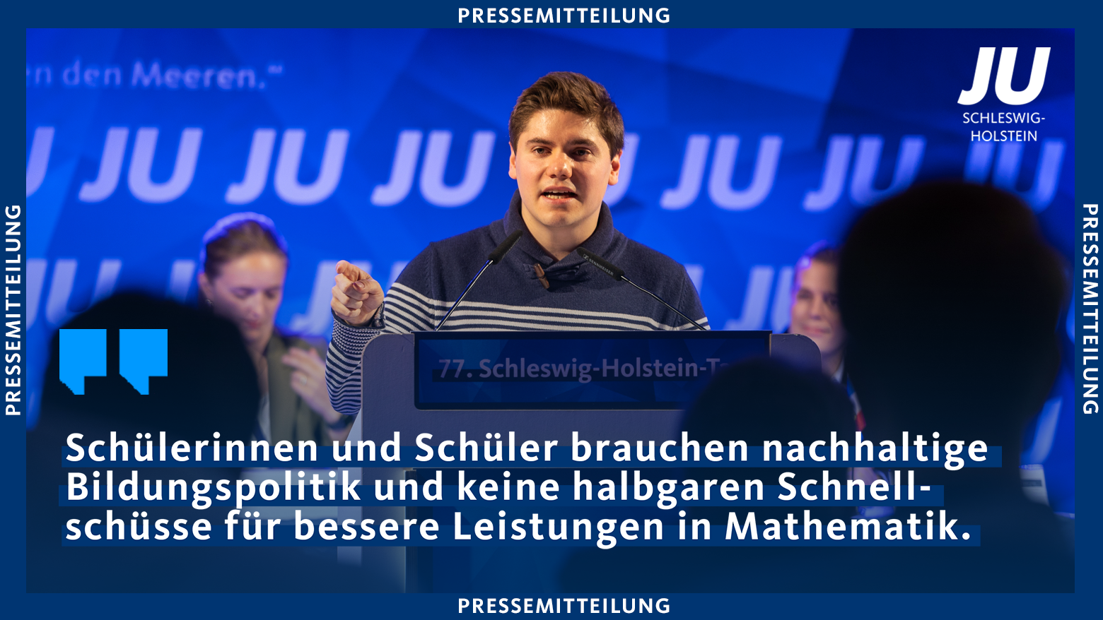 Der jüngste Bericht über die desaströsen Mathematikleistungen beim Mittleren Schulabschluss (MSA) beschäftigt den Schleswig-Holsteinischen Landtag: Fast die Hälfte der Schülerinnen und Schüler in Schleswig-Holstein erreichte 2024 im Fach Mathematik die Note 5 oder schlechter. Diese Zahlen sind alarmierend und ein klarer Handlungsauftrag. „Es ist erschreckend, wie die Oppositionsparteien FDP, SPD und SSW auf diese Herausforderung reagieren: Mit halbgaren, kurzfristigen Maßnahmen, die keinen nachhaltigen Effekt haben werden“, kritisiert der Landesvorsitzende der Jungen Union Schleswig-Holstein, Felix Siegmon.